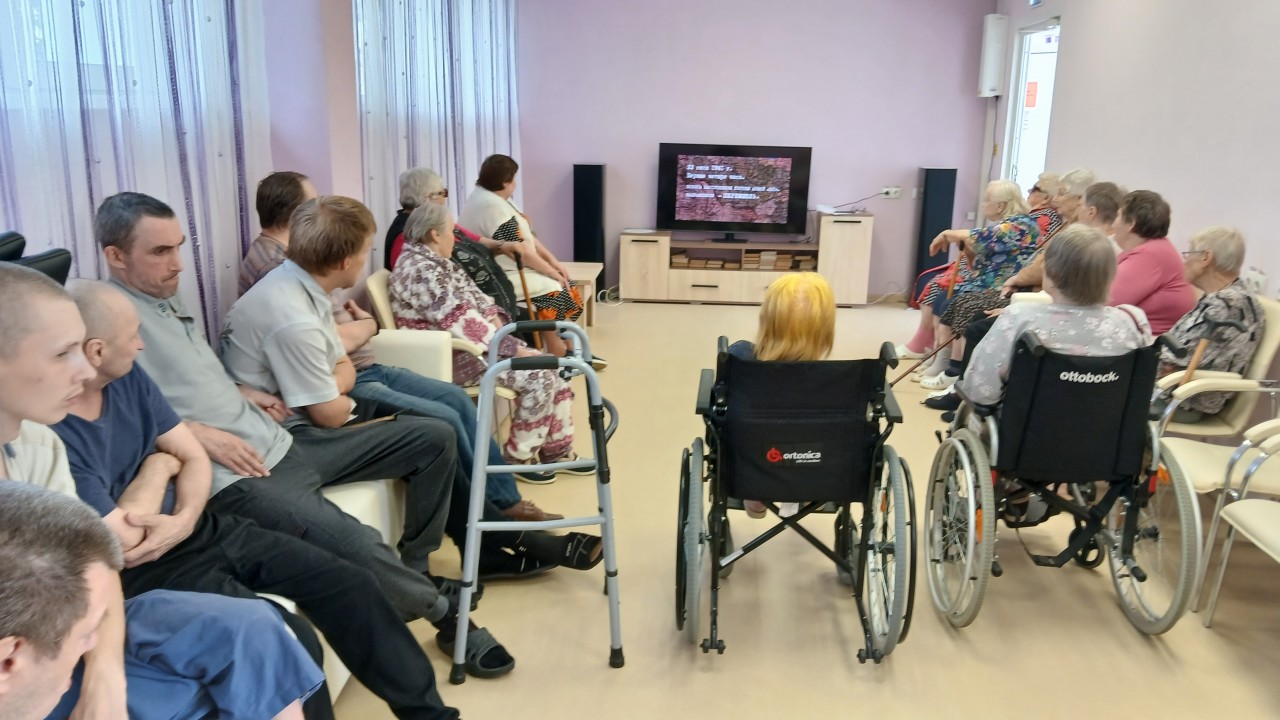 20 июня 2025 года для граждан пожилого возраста и инвалидов стационарного отделения (по типу «дом-интернат») и полустационарного отделения в рамках реализации проекта «Активное долголетие» прошло мероприятие Час памяти- Свеча памяти «22 июня…А впереди была война» с просмотром документального фильма «Как началась война. Первые 4 часа», приуроченное ко Дню памяти и скорби .
