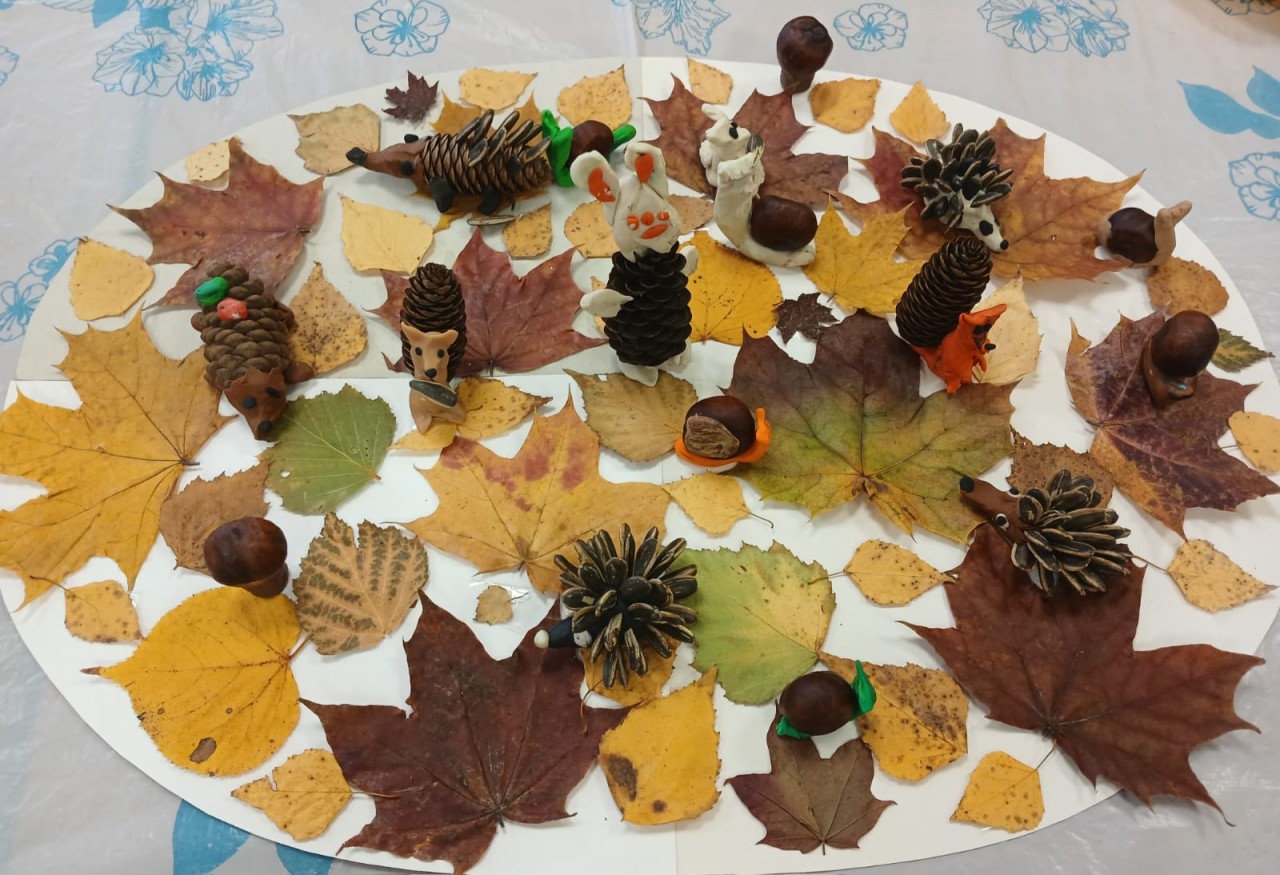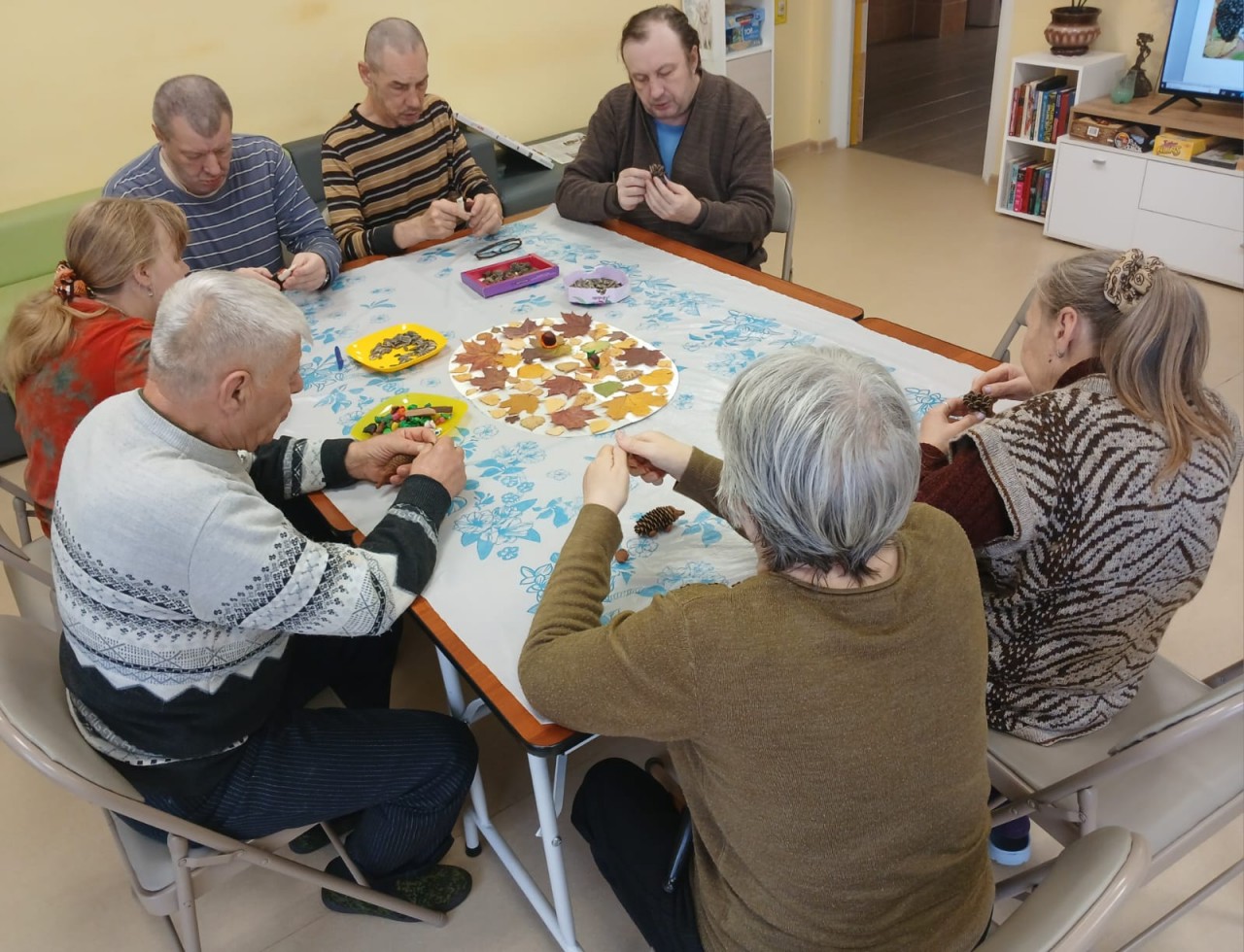 Сегодня получатели социальных услуг коллективно сделали разные поделки из природного материала.