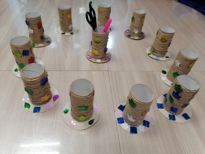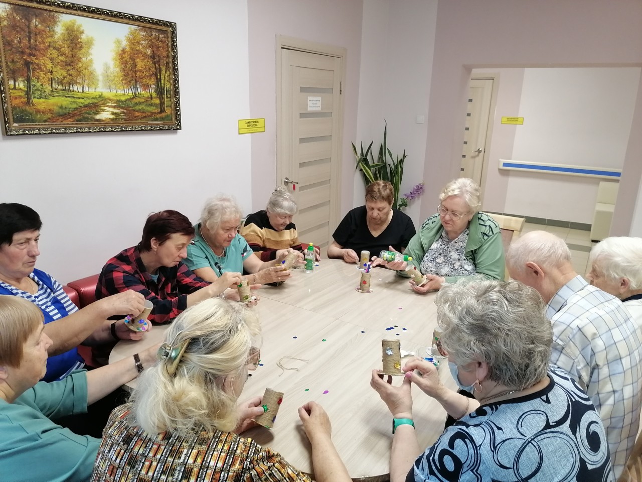 На базе структурного подразделения расположенного по адресу: Тульская область, Киреевский район, урочище "Красный лес" в рамках реализации регионального проекта «Тульское долголетие», с получателями социальных услуг было проведено занятие по изготовлению полезных и красивых предметов из подручных материалов – втулок. Тема занятия звучала как «Поделки из втулок», и, казалось бы, что можно сотворить из такого неприметного бумажного рулончика? Однако участники смогли преобразить обычные втулки в оригинальные и функциональные изделия. В ходе занятия подопечные создали подставки для ручек и карандашей. Процесс изготовления был несложным: втулки обматывались шпагатом, декорировались пайетками, и стразами. Каждый участник смог проявить свою индивидуальность и креативность, создавая уникальную подставку, отражающую его вкус и предпочтения. Занятия творческой деятельностью оказывают на пожилых людей исключительно положительное влияние. Они расширяют кругозор, развивают мелкую моторику, дарят чувство удовлетворения от сотворения своими руками красивых и полезных вещей. Кроме того, совместное творчество способствует укреплению социальных связей, создаёт атмосферу радости и увлечённости.