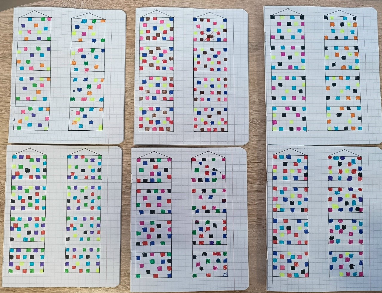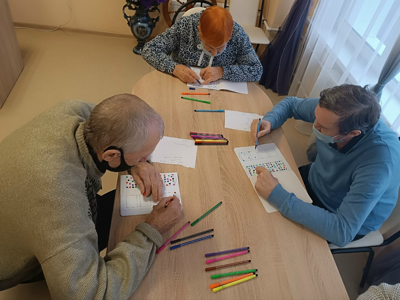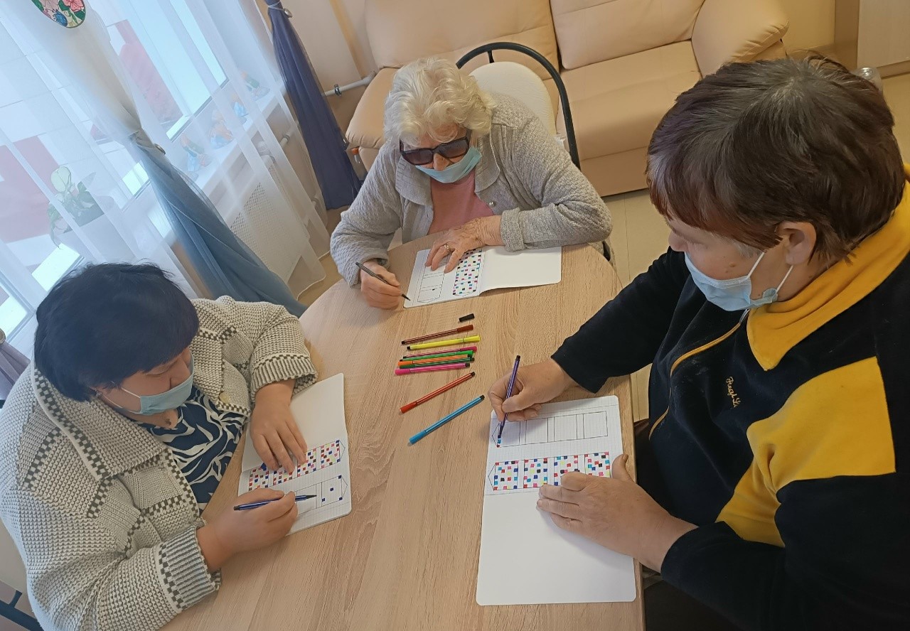 Участники с энтузиазмом приступили к созданию узоров из разноцветных квадратов. Слева располагался образец, демонстрирующий конфигурацию и цветовую гамму каждого элемента. Справа находилось рабочее поле, требующее высокой степени концентрации внимания и точности движений.